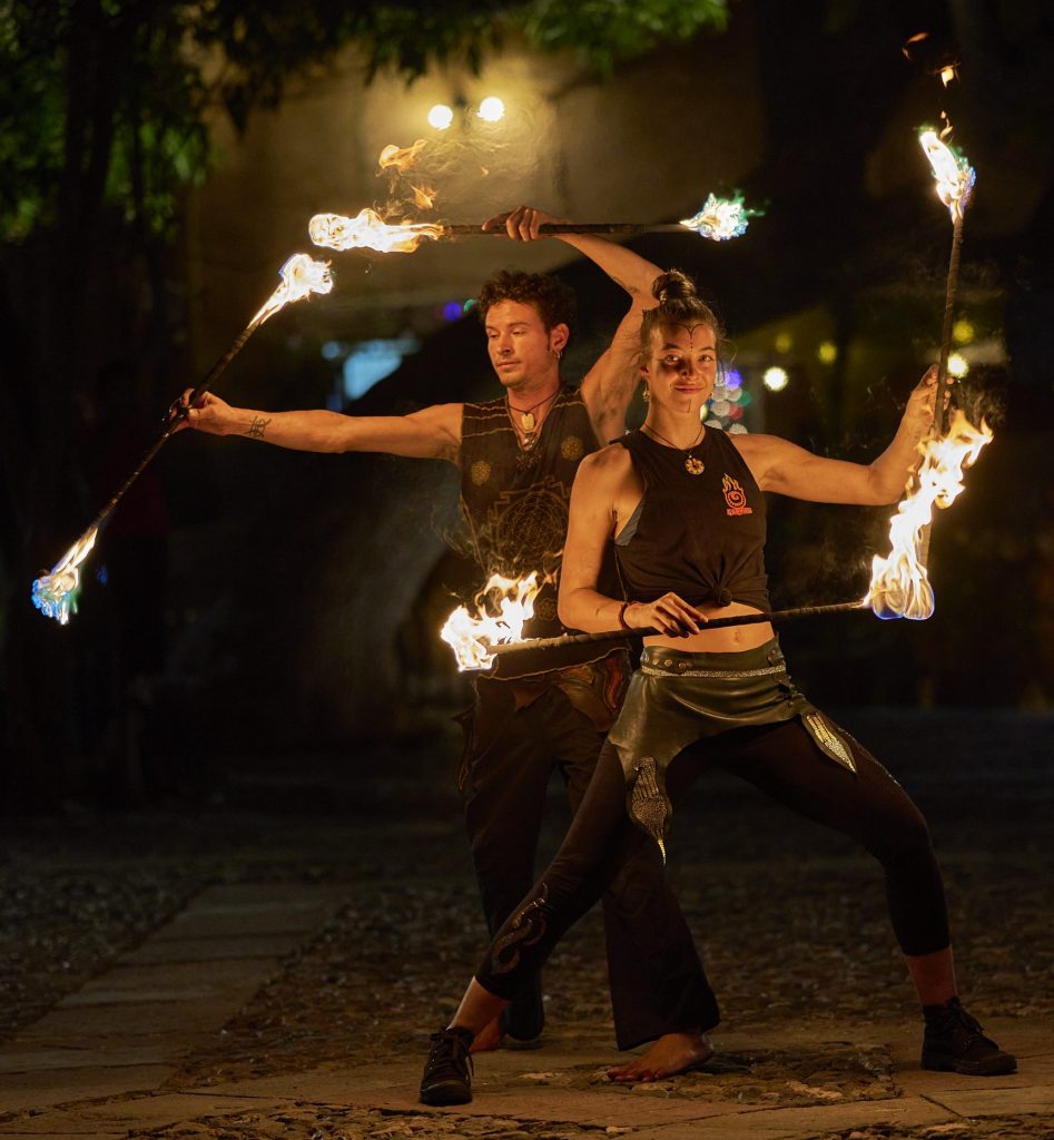 Kalayo Seeds is an international Artist Duo from Costa Rica and Germany performing all over the world, mostly with fire and LED – but also offering some Circus Shows for like varietés or daytime events, as well as several Workshops.